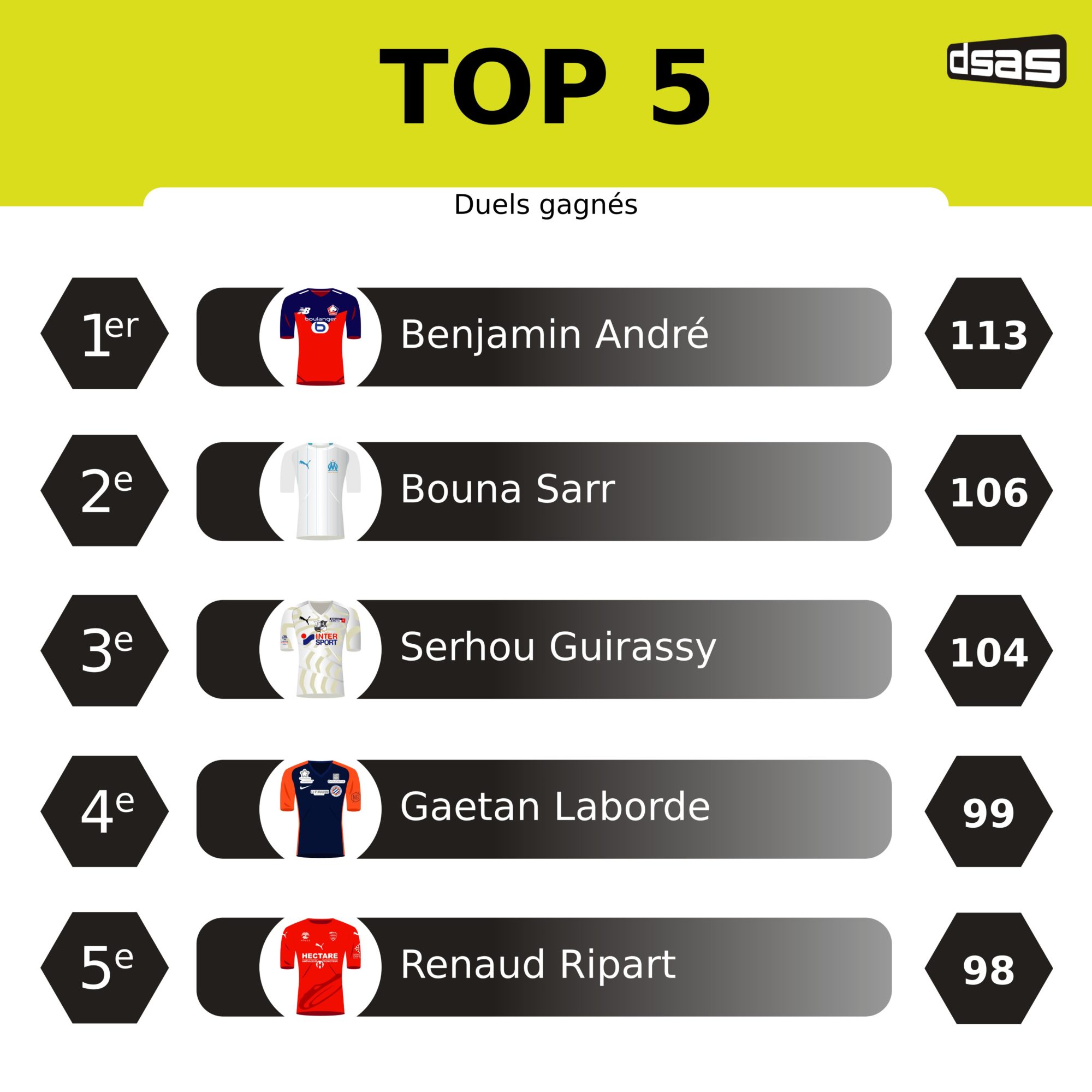 Si Gaëtan Laborde a attendu la 13ème journée pour ouvrir son compteur buts cette saison, il ne lui a pas fallu tout ce temps pour aller au charbon. Selon Du Stade aux Stats, il est le 4ème joueur de l’élite a avoir remporté le plus de duels depuis la 1ère journée. Un guerrier qui n’hésite pas à aller au contact.