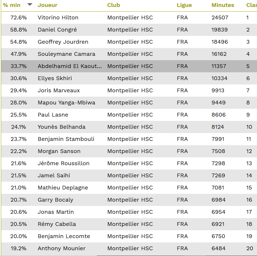 Daniel Congré (54,8%) et Geoffrey Jourdren (54,8%) complètent le podium. Viennent ensuite d’autres joueurs importants comme Camara, Belhanda ou Roussillon dans le classement sur l’image ci-dessus.