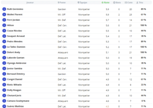 Ci-dessous l’ensemble des données MPG des joueurs héraultais :