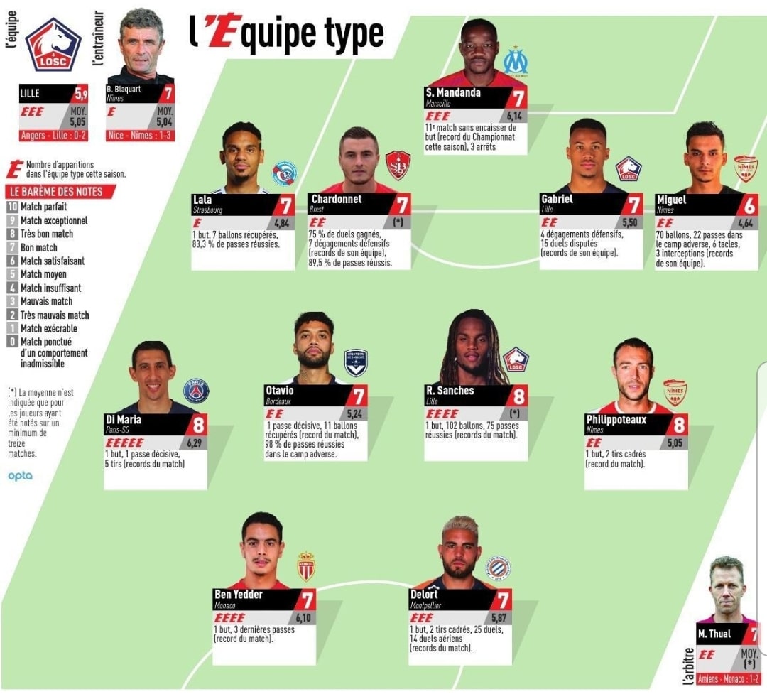 Pour la troisième fois de la saison, Andy Delort fait partie du onze type d’une journée. Avec un 7, il est désormais en 7ème position du classement des joueurs de champ. Sa moyenne est de 5,87. Une moyenne amputée car sa plus mauvaise note contre Metz, mercredi.