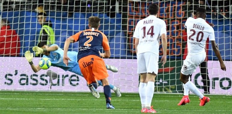 Geronimo a poursuivi son chaud, cumulant 7 arrêts dont cette parade réflexe face à Diallo, encore lui, sur une tête puissante qu’il a repoussé d’une main ferme mais, dans la continuité de l’action il sera enfin battu par… Hilton. Le capitaine du MHSC déviant malencontreusement la frappe de Boulaya, entré en jeu 5 minutes auparavant…