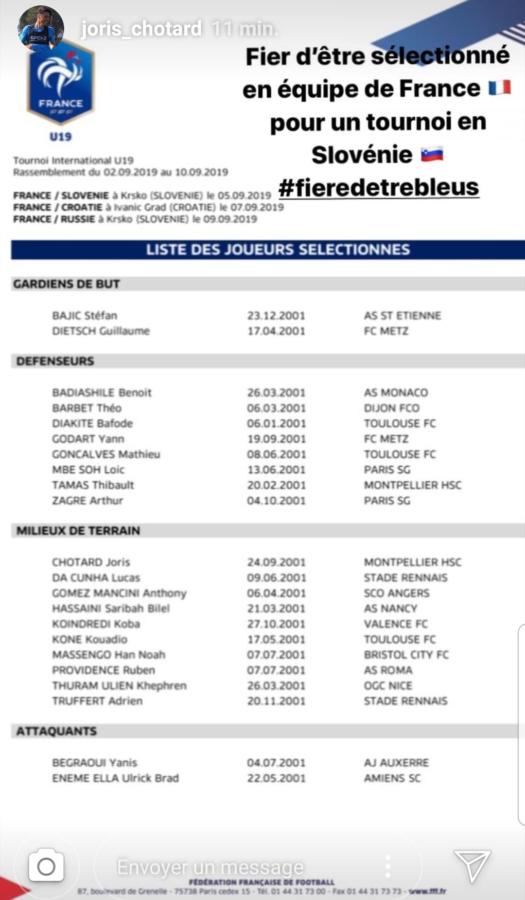 Les bonnes nouvelles s’enchainent pour Thibault Tamas et Joris Chotard. Après leur intégration au groupe professionnel durant l’été, et même une première apparition en Ligue 1 pour le second, ils sont convoqués pour un tournoi international avec l’Equipe de France U19, du 2 au 10 Septembre 2019.