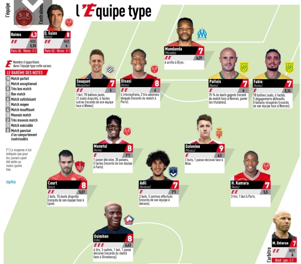 Crédité d’un 7 pour sa performance globale, Arnaud Souquet occupe le poste de latéral droit de L’Équipe Type de la 7ème journée C’est la seconde fois de la saison. Géronimo Rulli, lui aussi noté d’un joli 7, voit Steve Mandanda lui être préféré pour garder les cages.