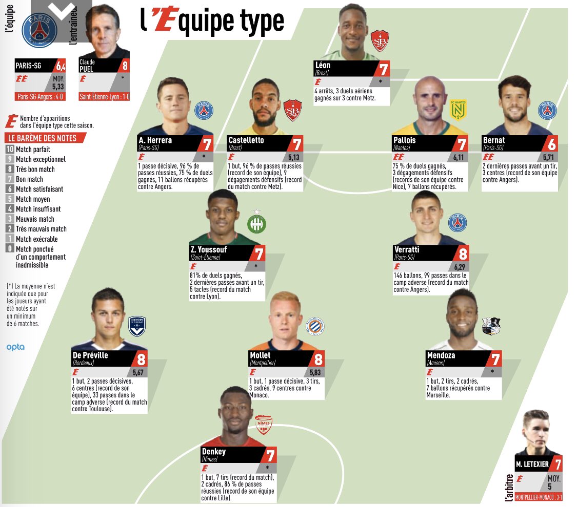 C’est le plaisir du lundi matin, quand ton équipe s’est imposée le week-end d’une fort belle manière, et d’attendre impatiemment de connaitre le ou les joueurs qui figureront dans L’Equipe Type du quotidien sportif français.