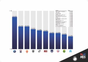 Boris Helleu, Maitre de conférences à l’Université de Caenqui supervise la formation a publié, sur le compte Twitter de l’observatoire du Sport Business, les résultats de ces travaux étudiants. Dans le cas du MHSC trois stats nous intéresse :