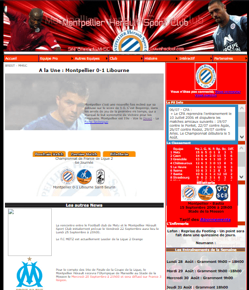 Le site du MHSC n’a pas toujours été un repaire à pop-up nous menant tout droit à de faux sondages. Avant ça, il a vécu plusieurs vies. Le site web.archive.org nous permet de nous faufiler dans le passé et de (re)-découvrir d’anciennes façades du site de notre club préféré.