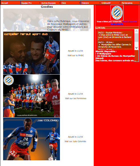Le site du MHSC n’a pas toujours été un repaire à pop-up nous menant tout droit à de faux sondages. Avant ça, il a vécu plusieurs vies. Le site web.archive.org nous permet de nous faufiler dans le passé et de (re)-découvrir d’anciennes façades du site de notre club préféré.