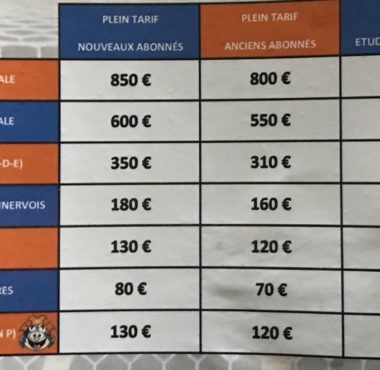 BrèvesLes tarifs de la campagne d’abonnement 16 mai 2018 Voici la grille des tarifs fournie par le club samedi dernier contre Troyes. Vous ne constatez donc aucune augmentation. ...