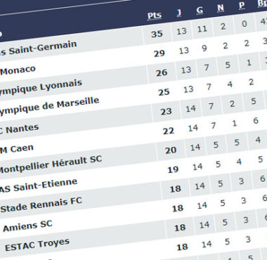 ActualitésBrèvesLe chiffre du jour : 5 26 novembre 2017 5 Comme le nombre d’équipes à avoir un goal average positif : PSG , ASM , OL , OM et MHSC . Un...