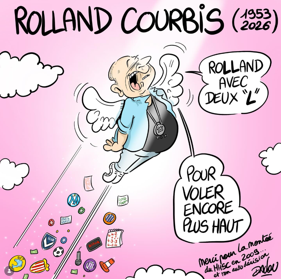 Dadou n’a évidemment pas échappé à l’actualité de ce début de semaine. S’il a forcément trouvé du plaisir à mettre quelques coups de crayons autour du succès de nos Pailladins, en Moselle, lors du 16ème tour de Coupe de France, il n’a malheureusement pas manqué de rendre hommage à Rolland Courbis, disparu à l’âge de 72 ans ce lundi.