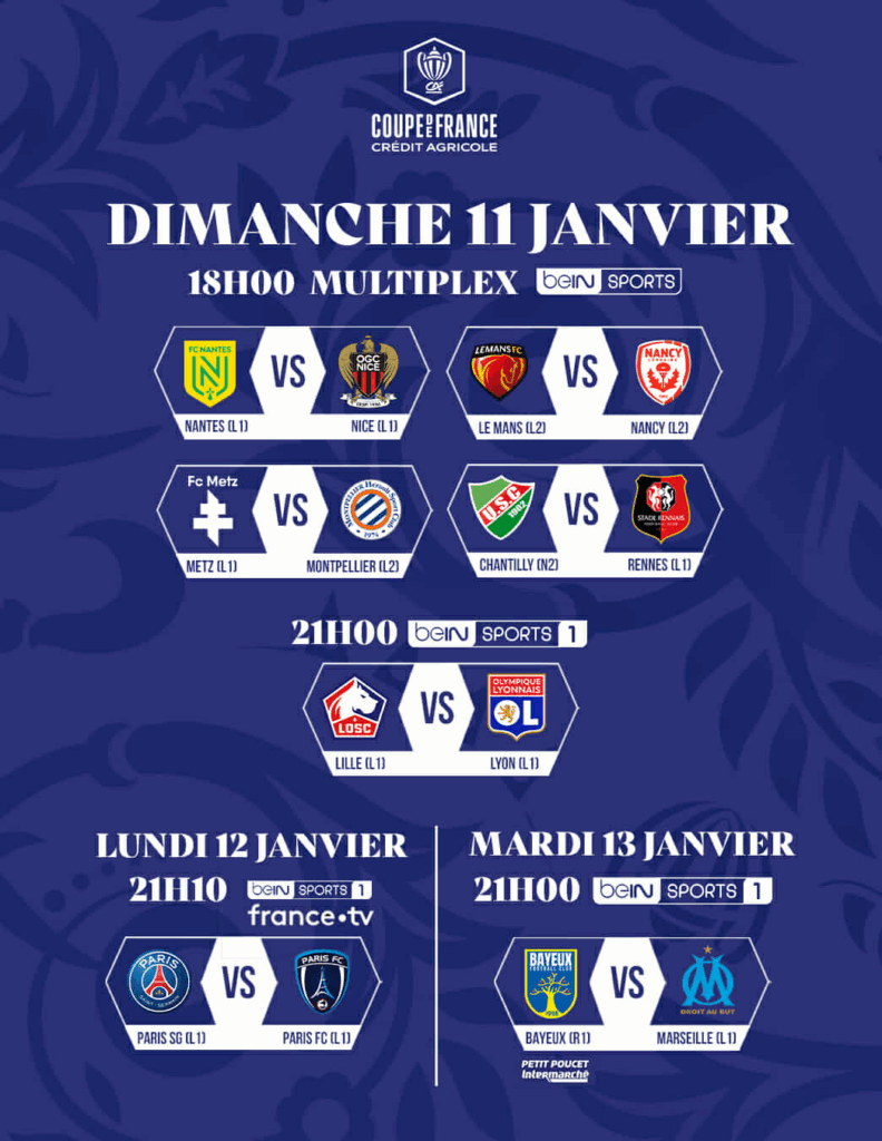 Notre club connaissait depuis hier soir son adversaire pour les 16e de finale, il connaît désormais le jour et l’heure du rendez-vous en Lorraine. Ce sera le dimanche 11 janvier à 18 heures, en même temps que trois autres rencontres qui seront diffusées en multiplex sur BeIn Sports. En attendant de voir s’il sera finalement possible de suivre l’intégralité de celle qui nous intéresse comme ce fut le cas face à Canet.