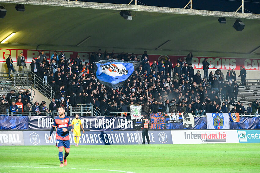 Alors que ce court déplacement dans les Pyrénées Orientales se prêtait logiquement à une sympathique mobilisation, la programmation du match et le prix pour accéder au parcage auraient pu être des freins majeurs. Mais les supporters Pailladins, pour cette dernière sortie de l’année 2025 en Coupe de France, étaient finalement bien nombreux à rallier Perpignan pour y supporter leur équipe. Dans une tribune qui leur était intégralement dédiée, derrière les différentes bâches de la Butte Paillade, ils auront encouragé les leurs jusqu’au bout, non sans manquer de temps en temps de chatouiller leurs voisins catalans. Récompensés de la qualification, les fans montpelliérains ont pu la fêter avec leurs joueurs à l’issue du match, la proximité du terrain étant un vrai bonheur, mais également avec Zoumana Camara qui n’a pas manqué de prendre du temps auprès du parcage. Un bon moment.